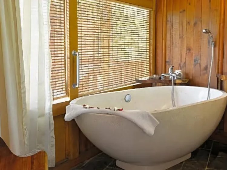 Implanté dans un écrin de verdure d'un hectare et demi, l'hôtel est composé de Lodges construits entièrement en bois et décorés avec raffinement. Le restaurant, les salles de conférences, les chambres, les piscines et le SPA sont en parfaite harmonie avec la nature et reliés entre eux par des passerelles.