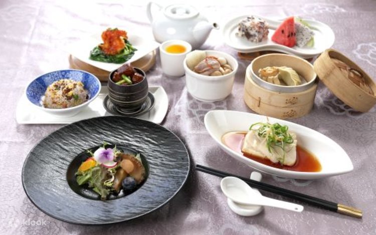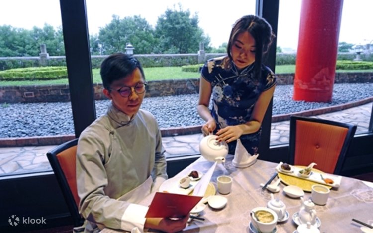 チャイナドレスを着ながら圓苑レストランでランチを楽しむ