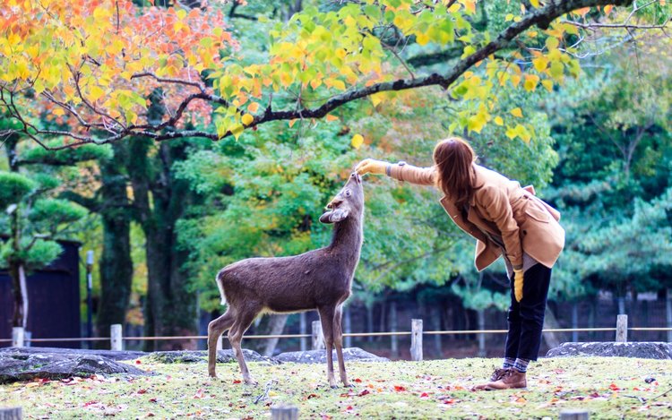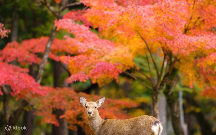 나라 공원에서 사슴과 교감하는 체험: 한가롭게 거니는 수천 마리의 야생 사슴과 가까이에서 교감하며 자연과 조화롭게 공존하는 아름다운 순간을 느끼고 잊지 못할 추억을 남겨보세요~