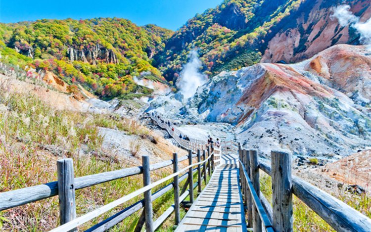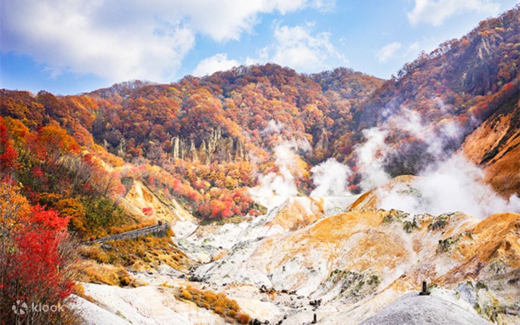 - 노보리베츠 지옥계곡 화산의 장관, 유황 증기 분출의 자연 경관을 가까이에서 느껴보세요.