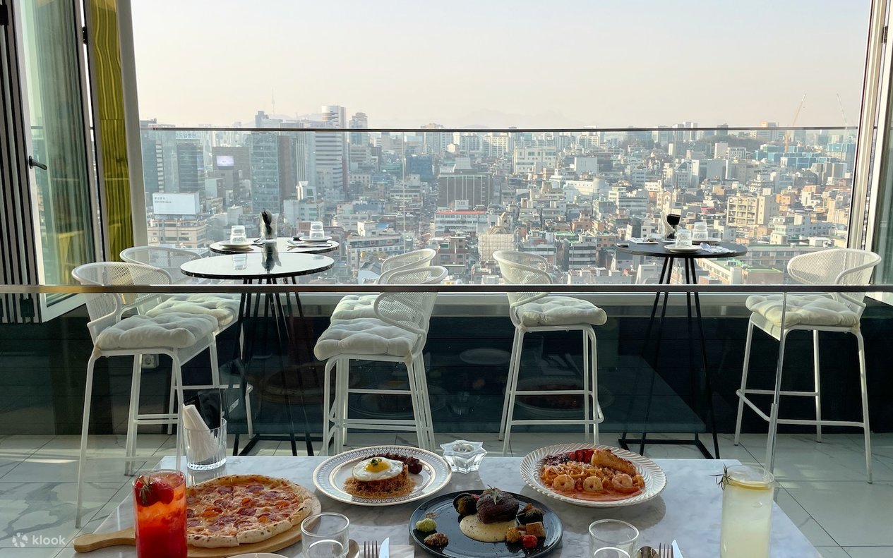 - Restoran & Lounge Atas Bumbung yang terletak di tingkat 13 Designers Hotel LYJ Gangnam Premiere di stesen Sinnonhyeon.