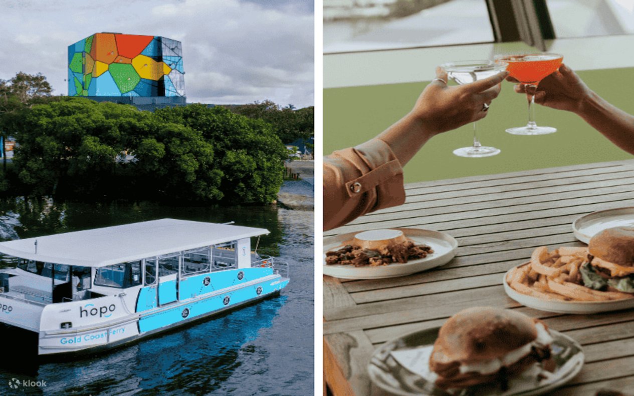 Selami hari yang penuh dengan seni, budaya dan pemandangan tepi laut yang menakjubkan dengan Pas HOTA - Home of theArts Cruise & Dine Experience. Mulakan perjalanan anda di atas Hopo, di mana anda boleh menikmati pemindahan pelayaran pergi balik yang singkat atau Pas Harian Hop-on Hop-off, sambil menikmati laluan air Gold Coast yang memukau. Masuk ke dunia Galeri HOTA yang meriah, yang menempatkan pameran yang memberi inspirasi dan seni kontemporari yang menakjubkan. Selepas menerokai galeri, nikmati pengalaman kulinari di pilihan anda sama ada The Exhibitionist Bar atau HOTA Café dengan baucar makanan dan minuman $30 yang disertakan, di mana anda boleh menghirup, menikmati dan menghayati pemandangan Gold Coast yang luas dan menakjubkan.