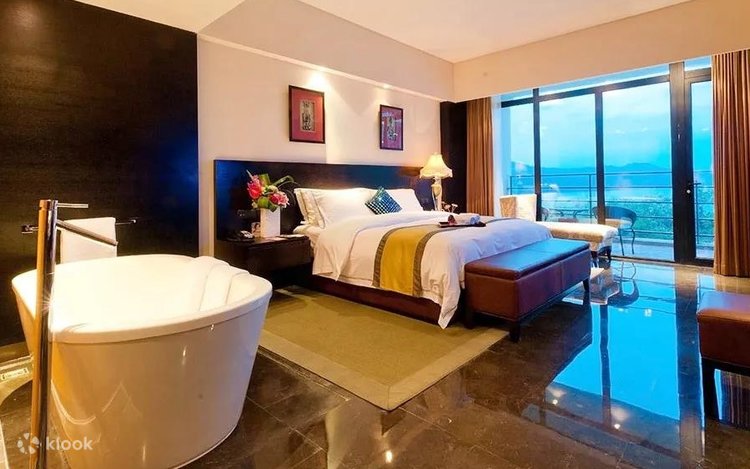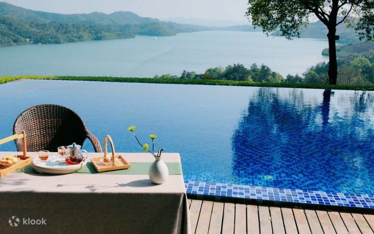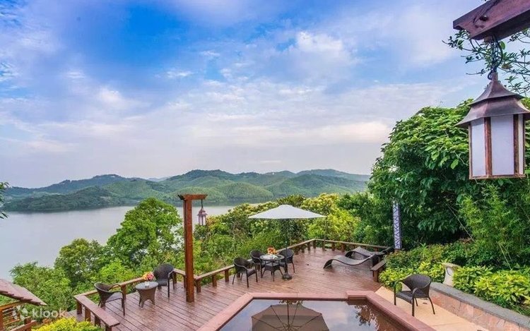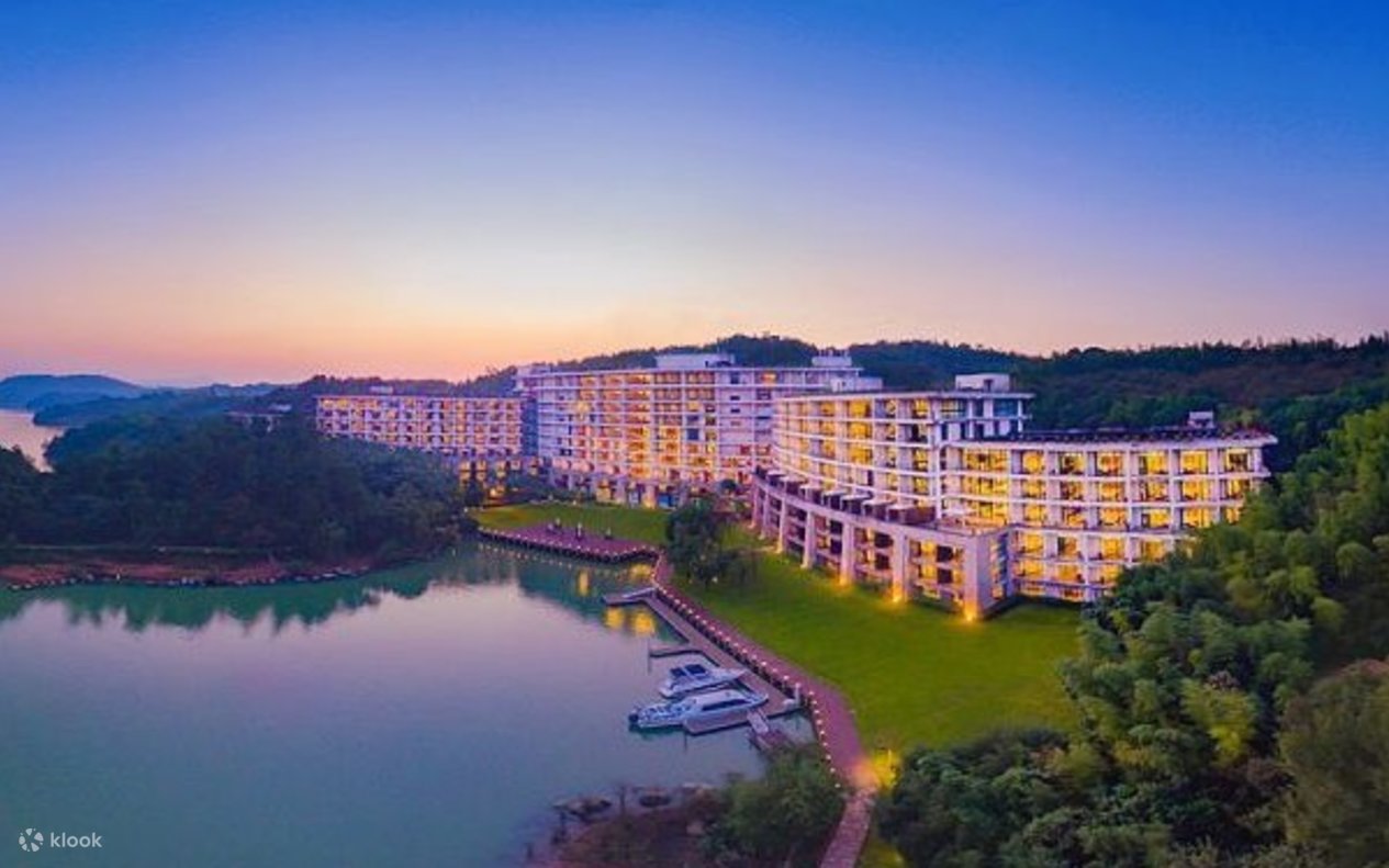 - Ia mempunyai hampir 800 bilik tetamu yang unik dan mesra serta rumah percutian keluarga tunggal, serta menikmati lebih daripada 4,000 ekar tasik dan gunung. Tasik Tianmu berada di kaki anda, dikelilingi oleh pergunungan hijau, dan anda boleh melihat ke pergunungan melalui tingkap ; ia bersebelahan dengan tasik yang jernih dan anda boleh melihat ombak yang berkilauan.