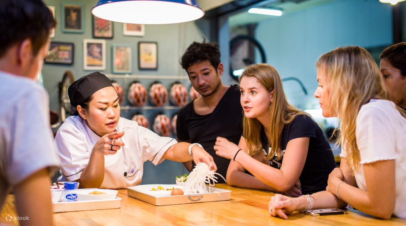 Uji kemahiran anda di dapur sambil mempelajari hidangan Thai yang baharu dan asli, dengan kelas memasak yang menyeronokkan ini di kawasan bandar lama Bangkok. Bertemu dengan kumpulan lawatan anda di Charoen Krung Soi 44 untuk pengenalan ringkas kepada kelas, kemudian teruskan ke pasar tempatan berdekatan, yang dipenuhi dengan semua hasil segar yang anda perlukan untuk kelas. Kenali penjual tempatan sambil anda menerokai pasar yang sibuk dan membeli-belah bahan-bahan yang anda perlukan bersama kumpulan lawatan anda. Anda kemudian akan kembali ke bilik darjah untuk menyediakan stesen anda sendiri dan akhirnya mula memasak! Temui semua rahsia untuk memasak masakan Thai yang lazat dengan arahan terperinci langkah demi langkah daripada pengajar berbahasa Inggeris anda. Buat hidangan savouri Thai yang popular, termasuk Pad Thai, Tom Kha Gai, Som Tam, dan juga Pulut Mangga untuk pencuci mulut! Sebaik sahaja anda selesai memasak, anda akan menikmati hidangan bersama rakan sekelas dan pengajar anda sambil bertukar cerita antara satu sama lain, sebelum anda meninggalkan bilik darjah dengan perut yang kenyang dan buku resipi untuk anda gunakan di rumah.
