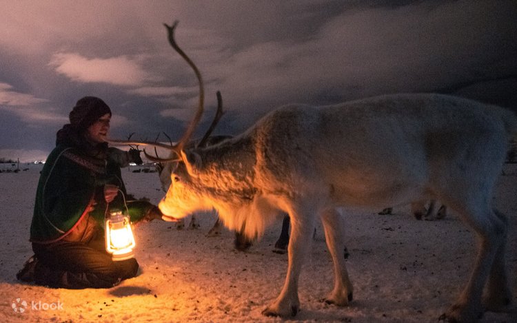 Отправьтесь в арктическую глушь за пределами Тромсё, чтобы провести вечер, посвященный культуре оленеводства, традиционной кухне и природе. Отправляйтесь в саамский олений лагерь и познакомьтесь с сотнями оленей, у вас будет время покормить их и узнать об их роли в арктической жизни. Насладитесь короткой поездкой на оленьих упряжках по снежным окрестностям, прежде чем собраться в теплой, освещенной свечами саамской лавву. Подается традиционный ужин из трех блюд, включающий оленину, а также вегетарианские, веганские и безглютеновые блюда. Предлагаются теплые напитки и десерт, а также рассказы о саамских традициях, оленеводстве и арктической истории, сопровождаемые традиционным пением йойк. В ясные ночи у гостей может быть возможность выйти за пределы лагеря, чтобы поискать северное сияние, прежде чем вернуться в Тромсё.