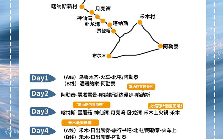 - เนื่องจากเหตุผลพิเศษในฤดูหนาว แผนการเดินทางของ Kanas/Hemu จึงมีการปรับเปลี่ยนไปมา โปรดทราบ