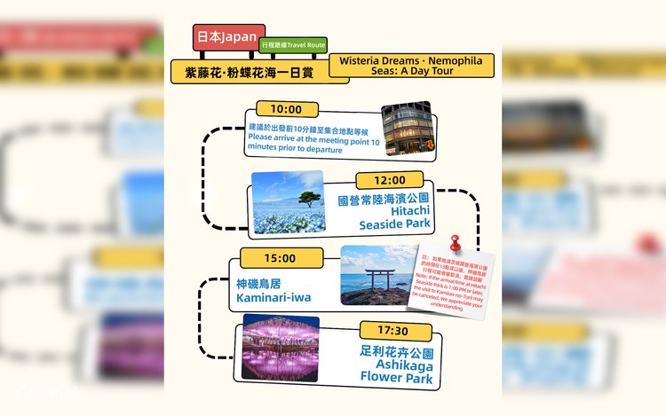 ทัวร์หนึ่งวันชมดอกวิสทีเรียสีม่วงยามค่ำคืนที่สวนดอกไม้ Ashikaga และทุ่งดอกเนโมฟีลาอิบารากิ
