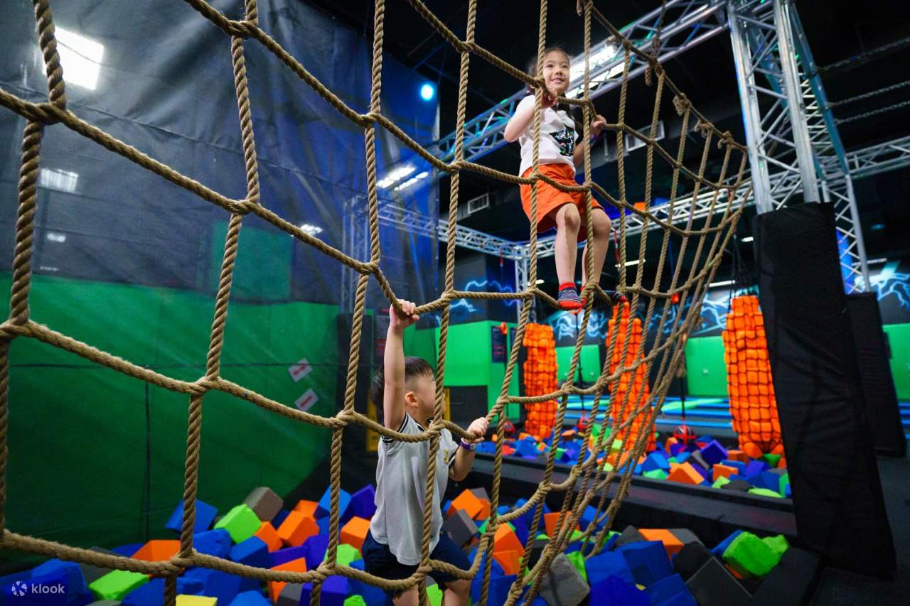 - สถานที่แห่งนี้เต็มไปด้วยแทรมโพลีน สระฟองน้ำ สนามอุปสรรค พื้นลม ถุงลม ผนังปีนผา ชิงช้า และสแล็คไลน์