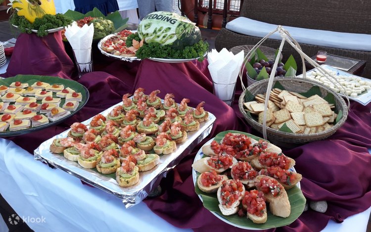 - 在星空下于甲板上享用丰盛的五道式海鲜美食,度过热带风情的夜晚