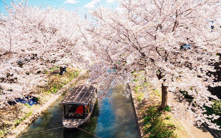 - 伏见十石舟沿河赏樱,可步行也可乘船,粉色花雨中宛如走进春日画卷