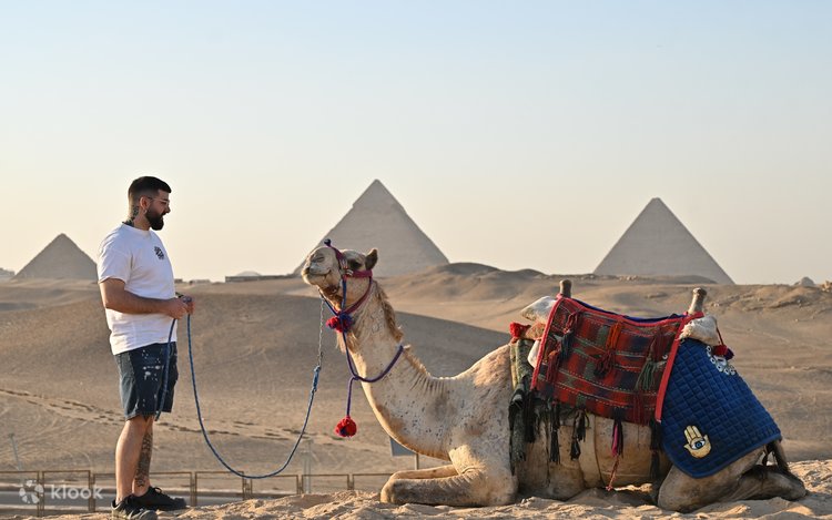 在体验完四轮摩托车后,您还可以骑乘骆驼穿越沙漠并环绕金字塔(如果已预订此选项)。