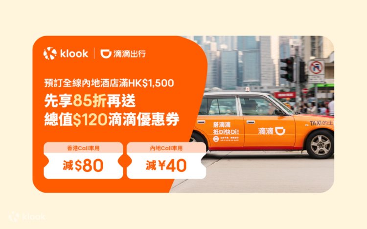 - 【Klook獨家🚗💨】即日至28/2,預訂全線內地酒店滿HK$1500,即送總值$120滴滴優惠券!