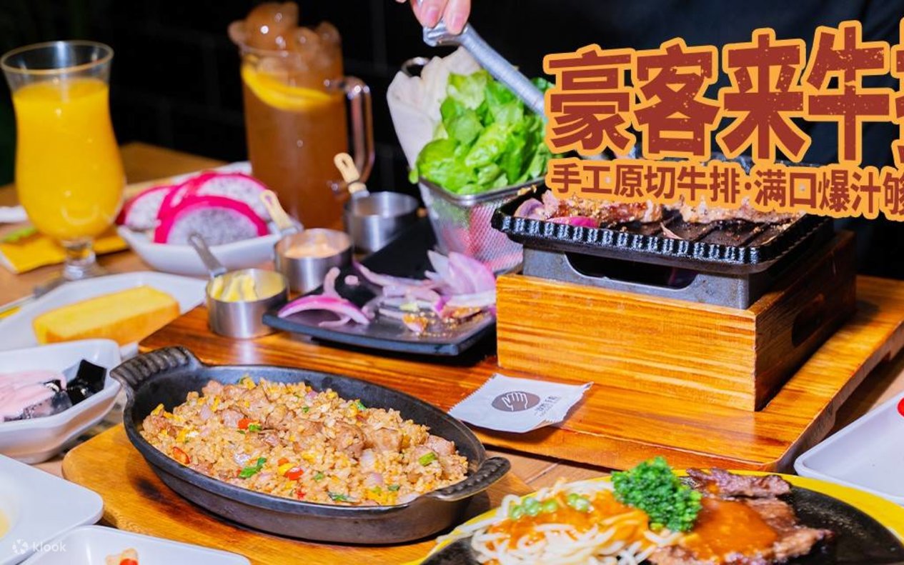 30年老品牌!400+家分店,遍佈全國70+城市,作為品牌翹楚的豪客來,在食材的選優上從來不含糊! 品質佳:貨真價實,新鮮食材,品質保障; 味道好:美味牛排盛宴,菜品豐富,出品優; 環境贊:簡單大氣,舒適安逸,時尚且講究