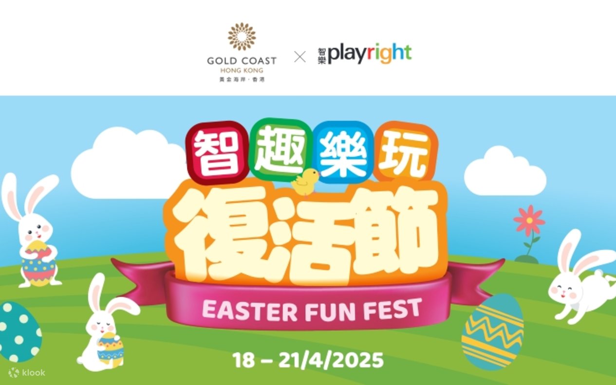 - 請於指定日期及入場時間前 10 分鐘前往黃金海岸大草地,於接待處出示經 Klook 登記之電子或已列印之門票,以供工作人員直接掃瞄二維碼,換取「黃金海岸 x 智樂 智趣樂玩復活節」手帶一套。參加者將獲發兩條活動通行手帶予一名 3 至 12 歲小童及一名家長。手帶如有遺失及損毁,恕不補發。