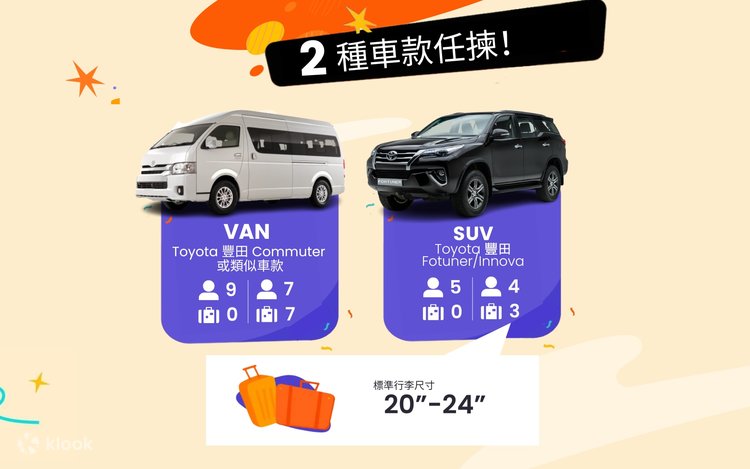 - 車輛品牌:豐田 Commuter或類似級數