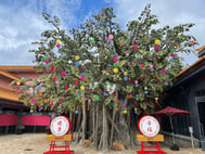 菩提樹旁的許願牆上掛滿一個個手繪特色燈籠,組成別具特色的燈謎陣,讓賓客挑戰傳統應節活動 - 猜燈謎。