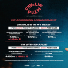 'I'M WITH CHARLIE' 優先入場VIP套票 (HK$ 1,887) 包括:
