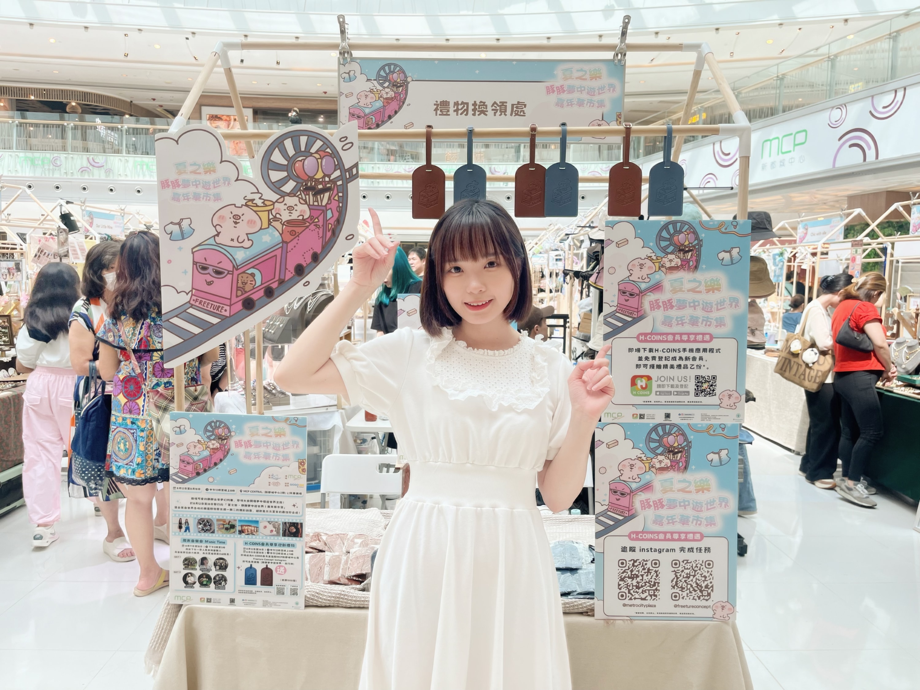 MCP新都城中心及 Freeture Concept 更加為了是次嘉年華市集準備了精美迎新禮物,只要即場免費成為H·COINS會員並追蹤MCP新都城中心及Freeture Concept的Instagram帳號,即可免費獲贈由draw4yu豚豚設計的仿皮革「豚豚夢中遊世界・行李牌」,陪伴大家遊歷世界各地。(禮品數量有限,先到先得,換完即止)