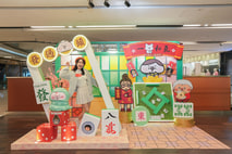 懷舊酒家 盆菜幸福大團圓帶大家走入昔日香港,「為食龍鳳酒樓」以喜氣洋洋的老式酒家「大龍鳳」作背景,中間直徑3米多的「盆」滿缽滿大盛宴盆菜的食材都融入了3個插畫角色的開心笑臉。右前方的Hello Wong變身點心姐姐,推着行運一條「籠」點心車,點心車後有收錢收到笑收銀處,大家可以走入收銀處當他的助手順道打打卡,祈望新年一起賺大錢!酒樓還為大家準備了甜蜜蜜豚豚圓圓肥嘟嘟湯圓,來年跟愛侶感情必定暖暖升溫!離開時,記得到旺氣爆磅磅重機過過磅,試試自己「斤兩」!