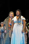 在一眾引頸企盼中,女高音安吉爾‧布魯首次於大都會歌劇院飾演在愛情與國家之間掙扎的衣索比亞公主—這一歌劇作品中的標誌性角色。音樂總監雅尼克‧尼澤-塞甘為邁克爾‧梅爾的全新製作擔任指揮。壯觀的舞台佈景透過精緻的投影和眩目的動畫,帶領觀眾進入古埃及高聳的金字塔和鍍金古墓之中。 女中音朱迪特‧庫塔西繼2024 年在威爾第《命運之力》中首次亮相後,於本劇飾演阿依達的埃及對手安涅莉絲。彼得‧貝科扎瓦飾演士兵拉達美斯,演繹了歌劇劇目中最偉大的三角戀。全明星陣容還包括男中音奎因‧凱爾西飾演的阿莫納斯羅,男低音莫里斯·羅賓遜飾演拉姆菲斯,哈羅德·威爾遜飾演國王。