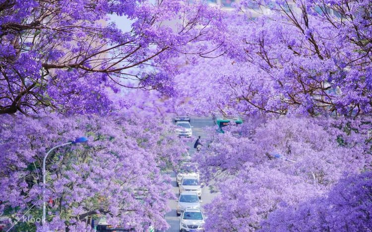 - 雲南昆明的藍花楹被精心栽種為行道樹,形成了宛如童話般的藍花楹大街。