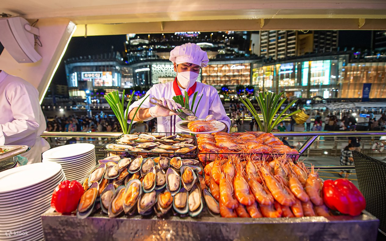 體驗遊船上最好的海鮮自助餐和國際自助美食,讓你讚不絕口