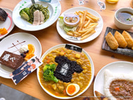 這次餐點以各校為概念,一共推出五道主餐、五道甜點及十款飲品。主餐的部分以學校的特色設計,像是「烏野高中」的炸雞咖哩飯,超可愛的烏野球衣配上咖哩醬汁;「稻荷崎高中」稻荷壽司定食,是以狐狸吉祥物為發想的豆皮壽司定食;「梟谷學園高中」以超可愛的貓頭鷹造型做成米漢堡套餐,讓人捨不得吃下去!「音駒高中」紅酒燉牛肉,將貓咪造型的飯和代表色紅色醬汁搭配,視覺味覺雙享受;「青葉城西高中」青醬蘑菇義大利麵,以青城的代表色系為發想,還插上可愛小旗幟!
