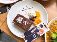 甜點部分有「烏野高中」巧克力蛋糕、「稻荷崎高中」布朗尼蛋糕、「梟谷學園高中」檸檬起司球、「音駒高中」蘋果派及「青葉城西高中」薄荷巧克力聖代;每個甜點上都還有各自代表的旗幟!