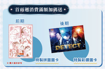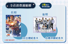 - 快閃店營運期間,首2週消費滿2000元(含),即加贈名偵探柯南A4紀念圖卡乙份。前後期全兩款!
