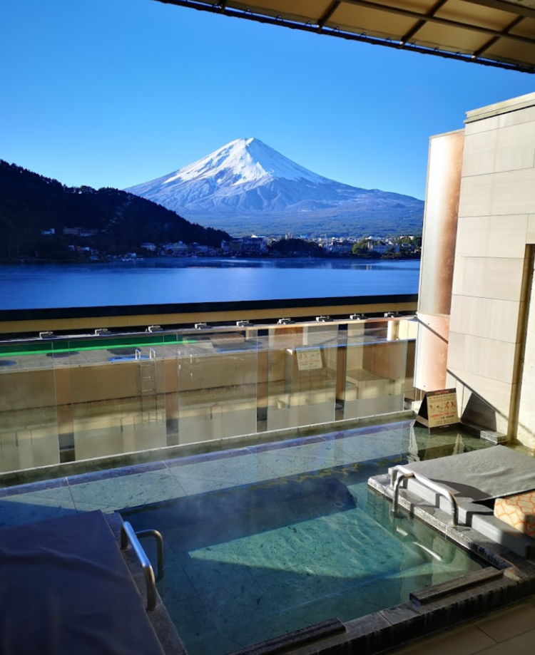可以從東京乘坐火車到河口湖站,然後乘坐飯店提供的免費接駁巴士前往